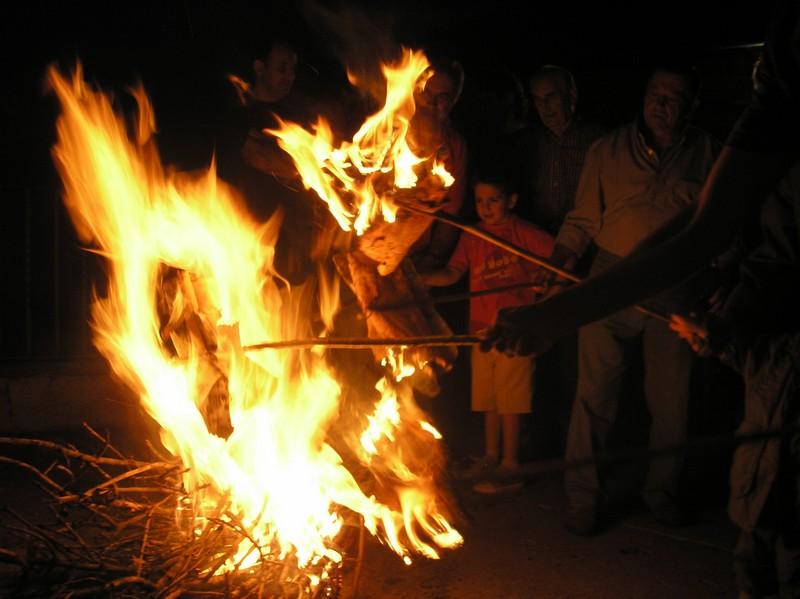 Antes eran los jóvenes solteros del pueblo los que subían por el camino de la montaña hasta la arena, un poco más abajo del Fort de Calsina, antiguo horno de cal, y el último casado encendía la hoguera que habían preparado durante todo el día. En ella iban prendiendo les falles, que bajaban corriendo hasta la plaza donde esperaban los materiales para encender la gran hoguera del pueblo. Repetían así, seguramente sin saberlo, el viejo mito de Prometeo robando el fuego a los dioses del Olimpo y entregándolo a los seres humanos.