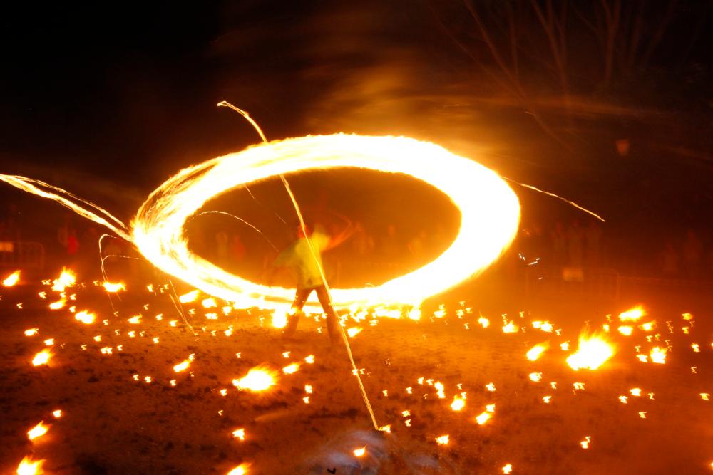 Es impresionante ver esas grandes bolas de fuego en la noche girando y girando sobre las cabezas de los mozos, y de las mozas que ya participan, soltando multitud de pequeños trozos de albá encendidos que van llenando el cielo y el suelo, como una alfombra de llamas, con su magia. Además, el sonido del fuego girando en el aire completa un espectáculo misterioso e inolvidable que nos retrotrae a la noche de los tiempos.
