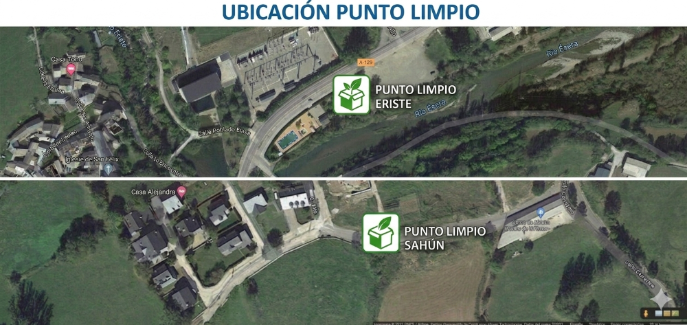 El Punto Limpio más cercano para depositar los residuos que no pueden ser tratados por la red de recogida habitual (muebles, electrodomésticos, componentes eléctricos, grandes volúmenes...) se encuentra en Benasque, en concreto, en la carretera a Anciles.